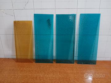 4 LASTRE o VETRI, ANTICHI COLORATI. -TRE BLU OCEANO CM. 50 x 19 -UNO GIALLO OCRA CM. 44,7 x 19 TAGLIATI A MANO, UN LATO TIPO MARTELLATO E L' ALTRO LATO LISCIO VETRI USATO IN BUONE CONDIZIONI, ALCUNA PARTE DEI BORDI E ANGOLI NON SONO LINEARI. SONO A DISPOSIZIONE DOPO VOSTRE RICHIESTE ALL' INVIO DI FOTO PIÙ SPECIFICHE -COLORI -DESCRIZIONI -MISURE SEMPLICI o... EVENTUALMENTE PIÙ SPECIFICHE, INVIO DOPO VOSTRE RICHIESTE ATTENZIONE COLORI, DESCRIZIONI E MISURE COMUNQUE FANNO FEDE LE FOTO. NOTA: VENDO L'ARTICOLO/OGGETTO COME DA FOTO, COSI' COME LO VEDETE VISTO E PIACIUTO. PER LA SPEDIZIONE FARO' UN IMBALLO MOLTO ACCURATO MA' NON SONO RESPONSABILE DI UNA EVENTUALE ROTTURA OPPURE PER L' INVIO POSTALE SENZA TRACCIABILITÀ NEL CASO L' ARTICOLO/OGGETTO VADA PERSO, (ALTRIMENTI POTETE FARE RICHIESTA DI SPEDIZIONE DIVERSA).