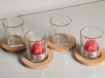 Set composto da 4 portacandele tealight in vetro trasparente con base in legno naturale: