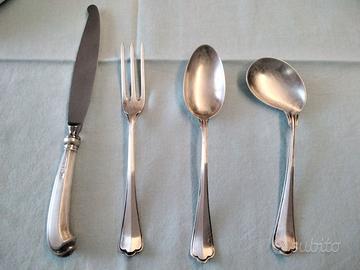 Bellissimo ed elegante set vintage composto da 4 posate da bambino in argento massiccio titolo 800 su 1000, come dimostrano i regolari punzoni di legge.