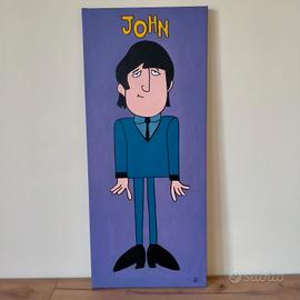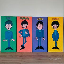 Vendo serie di 4 tele dipinte a mano ognuna raffigurante un personaggio dei Beatles in stile cartoon anni '60.