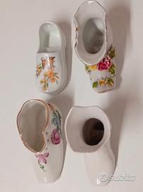 4 vecchie piccole scarpe in porcellana / ceramica ( Limoges, Capodimonte, Herald e anonima) , molto belle ed in ottime condizioni, probabilmente dipinte a mano.