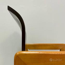 4 sedie nello stile di Tobia Scarpa Realizzate negli anni 70 Design iconico e affascinante, in questo modello si mostra ancora una volta la tipica struttura a doppio cavalletto di Scarpa con il caratteristico giunto arrotondato. Il design semplice e minimale ricorda un volume cubico; i supporti, invece, sono superfici sottili e di forma anatomica. La seduta e lo schienale sono sagomati in compensato e fissati con perni a traverse lungo il centro che offrono un comfort estremo. Il retro presenta un cuneo nella parte inferiore, necessario per la presenza di un rinforzo che reagisce alle sollecitazioni di torsione, più forti in questo punto. Ottima linea, design ricercato sobrio ed elegante tipico del periodo. Scocca leggerissima e dalla linea molto ricercata. Ideali per arredare ambienti moderni e classici. Abbiamo eseguito un restauro conservativo, piccoli segni del tempo. No rotture no mancanze. Le misure sono: H schienale 72, larghezza 50, profondità 47, H seduta 44,5 Spediamo in tutta Italia su bancale con imballaggio professionale a prova di corriere. REGALO SE LA VOLETE UNA QUINTA SEDIA UN PO' ROVINATA