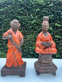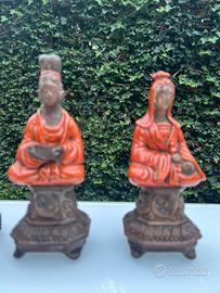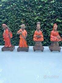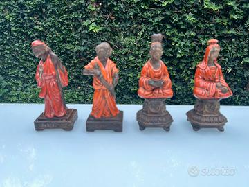 4 statue in ceramica decorata in stile orientalista, di Ugo Zaccagnini. Altezza 20 cm. Perfette, senza sbeccature. ( le ceramiche non sono firmate ma sono autentiche.. )