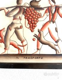 401 - GIO PONTI RICHARD GINORI S. CRISTOFORO FAMOSA MATTONELLA RAFFIGURANTE “IL TRASPORTO” DELLA SERIE LA VENDEMMIA. DIMENSIONE 14,5 x 14,5 cm.