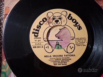 Per i collezionisti un 45 giri del 1976 Coro Piccoli Boys Degli Orsi Burloni Cantano Sabrina Mantovani e Gianluca Belenghi Lato a : "Nella vecchia fattoria" di Kramer-Savona-Giacobetti. Lato b: "Il mio bel castello"