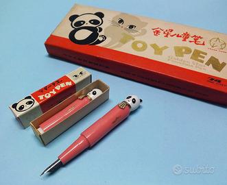 Penne stilografiche vintage, anni 50 - 60, Toy Pen della Golden Star, con panda nella parte superiore. Si tratta di penne gioco d'epoca per bambini, di piccole dimensioni e richiudibili, ognuna con la sua piccola scatolina.