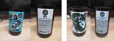 BICCHIERI RICAVATI DAL TAGLIO DI BOTTIGLIE DI BIRRA THAILANDESE DA COLLEZIONE, MARCA FOOL MOON.