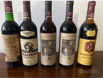 5 bottiglie, vino chianti Classico Chianti Santa Cristina 1971 Firenze Chianti villa dei priori 1971 2 Chianti Verrazzano 1971 chianti Castelgreve 1977