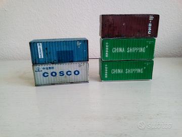 5 container artigianali, in scala H0 1/87 per plastici e diorami. il carro merci e i camion non sono compresi, vedi altre mie inserzioni per i camion. Spedizione 7 euro
