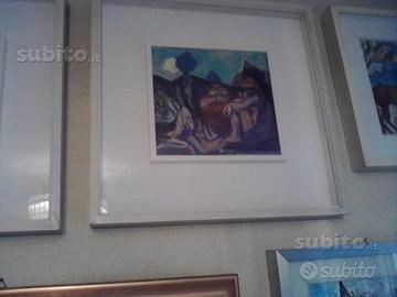 Pigola Rinaldo . Oli su tela . Soggetti vari gallo alla finestra . fiori N. 2 pastori N. 2