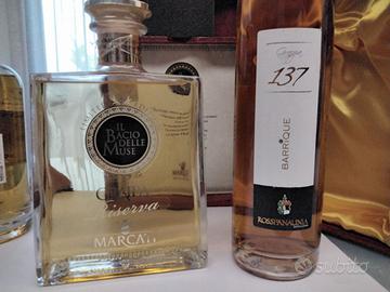 4) Marcati,Grappa Riserva Il Bacio delle Muse limited edition, 0,7 litri, 40 gradi, 18 mesi in fusto di rovere, astuccio in legno, 45 EURO