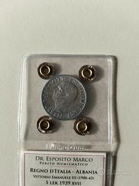 moneta vittorio Emanuele terzo Albania 1939 argento835 peso 5 grammi moneta periziata euro 35 consegna a mano zona Chieti scalo possibile spedizione