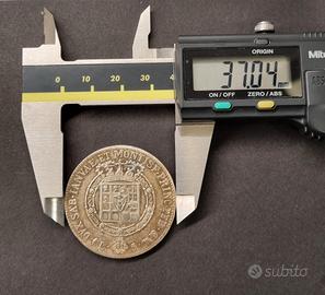 Argento 900, diametro 37,04 mm, peso circa 22 g.(da catalogo dovrebbe essere 25).