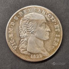 5 lire del Regno di Sardegna, Vittorio Emanuele I, anno 1820.