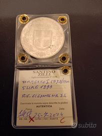 Vendo come da titolo Moneta in Argento 5 Lire 1879 Umberto I periziata SPL