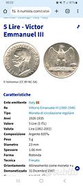 5 lire 1927 Argento "Acquilotto" seconda guera mondiale in buone condizioni presenta solo una piccola botta sul lato, come da foto in capsula