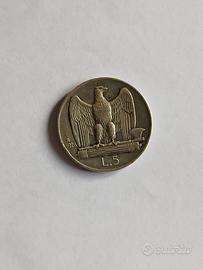 Moneta 5 Lire 1928 REGNO D'ITALIA 2 Rosette Vittorio Emanuele III Rara
