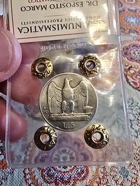 moneta regno d'italia 5 lire 1928 aquilino 2 rosette periziata MB moneta rara da trovare.