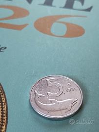 5 lire 1956 delfino, Rara, in condizioni BB come da foto.