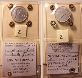 5 lire 1956 - RR - BB PERIZIATE - GIGANTE N.287