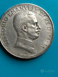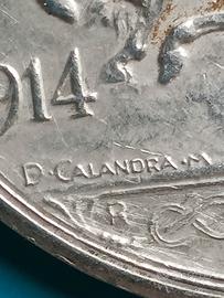 5 lire del 1914 in Argento classificata dal catalogo il Gigante 2025 in R2 BB (bellissimo). Vittorio Emanuele III