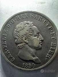 5 LIRE CARLO FELICE NUMERO 3 MONETE ARGENTO ANNO 1827-1828-1830