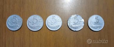 vendo monete molto rare, 5 lire del 1954, 5 pezzi in totale, tre messe bene, due un po' malconce, vendo in blocco. prezzo leggermente trattabile.