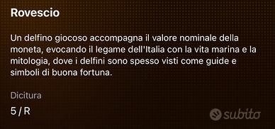 Vendo dalla mia collezione privata l’iconica moneta da 5 Lire del 1956, l'anno più raro e ricercato di tutta la serie "Delfino". A differenza delle altre annate comuni, nel 1956 sono stati coniati solo 400.000 esemplari, rendendo questo tondello un pezzo "chiave" per completare qualsiasi collezione della Repubblica Italiana e un sicuro investimento numismatico. Dettagli dell'esemplare: Anno: 1956 (Rara - R) Stato di Conservazione: Ottimo (BB/BB+). Come visibile dalle foto macro, i rilievi del delfino sono nitidi, il timone è ben definito e, soprattutto, la data 1956 e il segno di zecca R sono chiari, integri e non manipolati. Metallo: Italma Autenticità: Garantita al 100%. Bordi e perlinatura in ottime condizioni. Valutazione: Il prezzo di 150€ riflette la rarità del pezzo e la richiesta di mercato aggiornata ai cataloghi Gigante 2026. È un’occasione per acquistare un esemplare pulito e onesto, senza i rischi di falsificazione comuni per questa annata. Modalità di consegna: 🚚 Spedizione: Gestita tramite il sistema sicuro della piattaforma (TuttoSubito), con imballaggio rigido professionale per preservare l'integrità della moneta. 🤝 Ritiro a mano: Disponibile per visione diretta e massima trasparenza. Disponibile per inviare ulteriori foto di dettaglio su richiesta. No perditempo o offerte al ribasso ingiustificate.