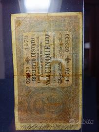 IL BIGLIETTO DI STATO DI UMBERTO I DA 5 LIRE DEL 1892. SI PRESENTA ( RIGOROSAMENTE AUTENTICA E SI PRESENTA ASSOLUTAMENTE A NATURALE 100X100, È RIMASTO INALTERATO NEL TEMPO DAL 1892, AD OGGI.