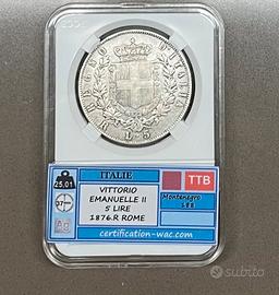 Moneta 5 Lire Vittorio Emanuele II 1876 Roma - Certificata TTB