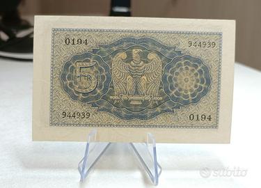 - 5 LIRE BIGLIETTO DI STATO VITTORIO EMANUELE III Fascio 1940 XVIII (ALTA Conservazione QUASI FIOR DI STAMPA)