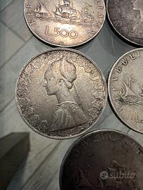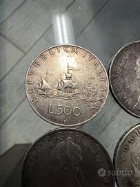 500 Lire in argento della Repubblica Italiana, comunemente note come "Caravelle".5 monete