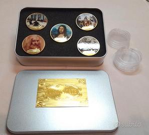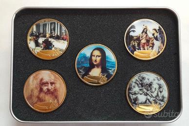 Confezione da 5 monete commemorative di Leonardo da Vinci con scatola e certificato