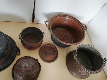 5 pentole e caliere in rame fine 800 primi 900