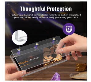 Protezione accurata: Dotato di un design a angoli a diamante con tre magneti incorporati, si apre e si chiude facilmente, proteggendo saldamente le tue carte.