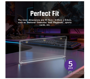 Vendo 5 pezzi cornici acriliche magnetiche custodie per banconote , tesori etc . Nuovo . 5 pezzi custodie acrilliche con chiusura mangnietica , trasparenti, protezione uv . Le dimensioni interne 18.75 cm di larghezza , 6.55 di altezza , 0.4 mm di spessore. Adatte a banconote, collezionabili vari , national treasure , flawless, play book , o 2 carte affiancate , pokemon , yugi, one pice, magic, brainrot. Per lungo le carte non ci stanno essendo 6.5 di altezza , ma ce ne entra 2 come in foto . Materiale ultra reistente e protettivo . Per incorniciare i vostri beni più preziosi ed esporli. Controllare bene le misure .5 Pezzi 187PT Carte Cornici Acriliche Magnetiche Trasparente Protezione UV Custodie per Treasures, Flawless, Playbook Cards