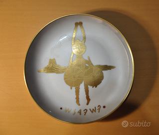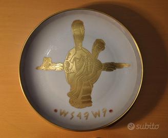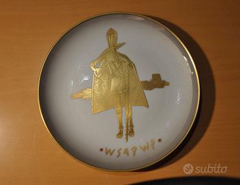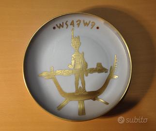 Piatti in porcellana incisi con la tecnica a l'acquaforte in oro puro 24kt e platino, serie nuragica limitata 1000 esemplari, raffiguranti i bronzetti della civiltà nuragica. Realizzati da Arte Morbelli.
