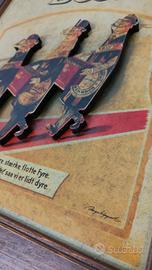 5 quadretti pubblicitari della birra Carlsberg anni '90, in legno e con inserti in rilievo, mai appesi e ideali per arredare. Misurano tutti cm 54x37. È preferibile il ritiro a mano, da combinare invece l'eventuale spedizione.