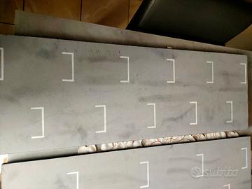 In vendita 5 ripiani realizzati a mano per esporre auto da collezione, a tema griglia di Formula Uno. I ripiani misurano 75,5 x 26 cm, spessore 1 cm. Sono realizzati in solido legno e dipinti come la griglia di partenza della F1, con un fondo effetto asfalto e le varie caselle di partenza. Ideali per auto di tutti i tipi ma in particolar modo per Minichamps di F1 e similari. Sono state realizzate per essere perfettamente inserite in una libreria Billy Ikea, ma possono essere utilizzate ovunque, anche apponendo delle staffe per farne mensole. Nella libreria Billy è possibile mettere i 4 "fermini" per avere un ripiano perfetto, o poggiarli su quelli esistenti. Si vendono in blocco a 80 euro, oppure singolarmente a 20 euro l'uno. Le Minichamps in foto NON sono ovviamente in vendita. Si trovano a Roma, zona Monte Mario/Trionfale, disponibile per consegna a mano a Roma. #minichamps #f1 #formula1 #collezionismo #auto