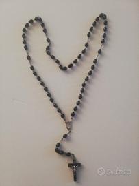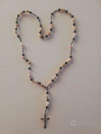 - UNO CON PIETRE NERE, CIONDOLO CON MADONNA E CROCE, LUNGHEZZA TOTALE CM. 60 (CIRCA).