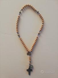 - UNO IN LEGNO SCURO CON CROCE E MEDAGLIETTA RAFFIGURANTE MADONNA DI MEDJUGORJE, DATA SU MEDAGLIETTA