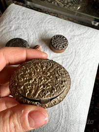 1 rotonda in ottone utilizzabile anche come ciondolo rivestita di velluto blu
