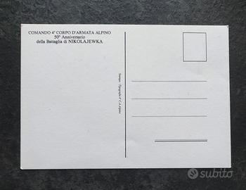 Cartolina, non viaggiata, emessa nel 1993 dal Comando 4° Corpo d' Armata Alpino, in occasione del 50° Anniversario della Battaglia di Nikolajewka.