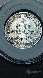 IL 50 CENTESIMI PERIODO COLONIALE UMBERTO I DELL' ERITREA DEL 1890 SI PRESENTA CON CODICE IDENTIFICATIVO NUMERO ( 0303) .