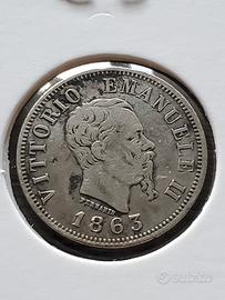 Vittorio Emanuele II, 1863 Zecca Milano La moneta è quella in foto.