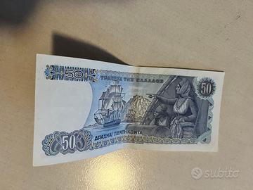 Testa di Poseidone, l'antico dio greco del mare e delle tempeste, a sinistra; tridente e disegno di un antico fregio in basso a destra.