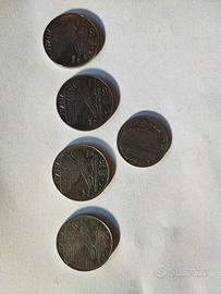 vendo 4 monete da 50 centesimi anno 1939 (con piccolo difetto di stampa alle rampe ,piume ridotte) anno 1940 e 2 del 1941,normali più una da 20 centesimi sempre del 1941 in condizioni splendide ,mai lucidate prezzo da concordare