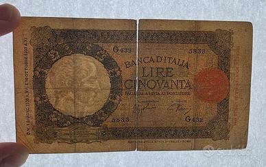 50 Lire Lupetta (Fascio) Roma - 1° TIPO | DM. 01-06-1938 | Condizione: MB (F)