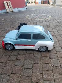 500 Abarth a scoppio telecomandata completa di tutto e con pochi difetti (trasmissione rotta e riaggiustata, parte dietro rotta che si può raggiustare con un po' di colla) .