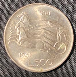 500 Lire In Argento “centenario Unità D’Italia “ del 1961. Moneta IN ARGENTO.